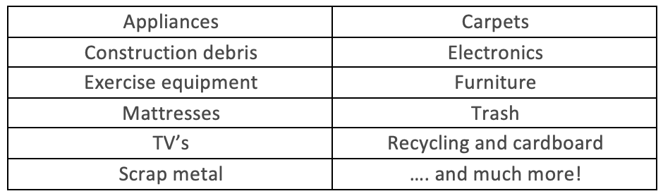 Do you have a lot of trash bags or the need for bulk trash removal services. Look no further, we are here to help!