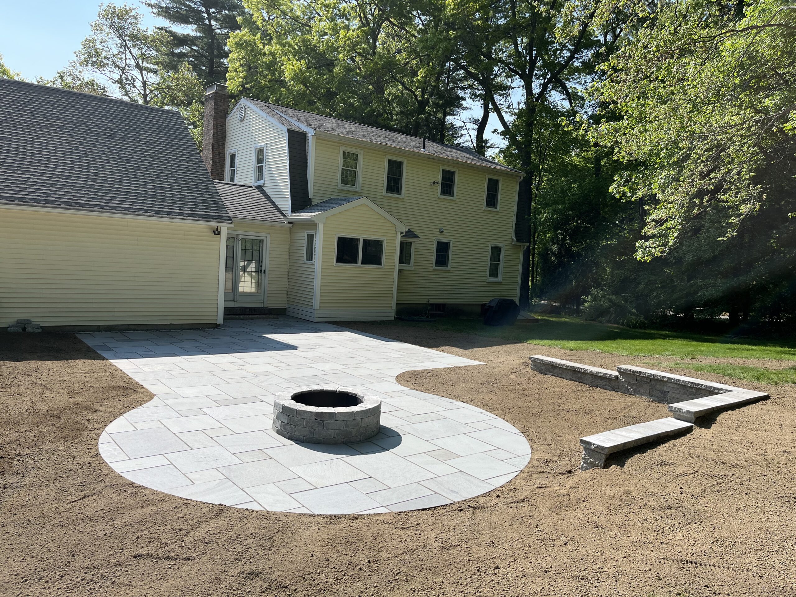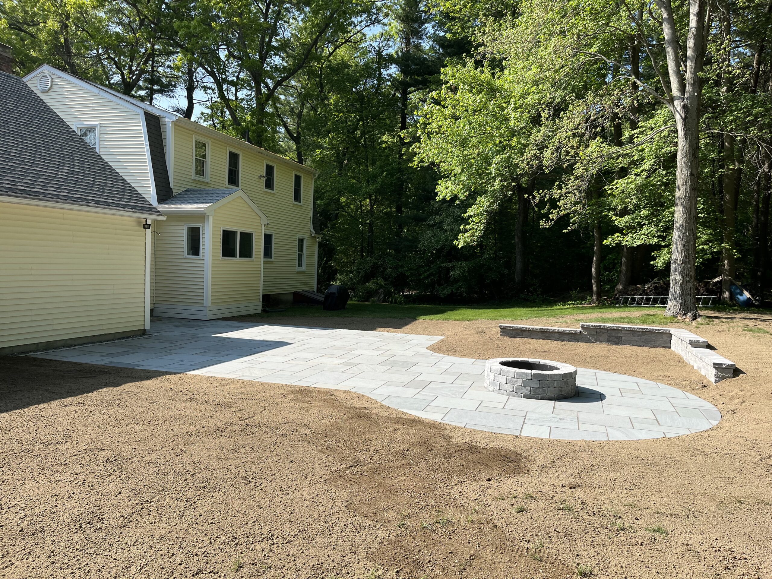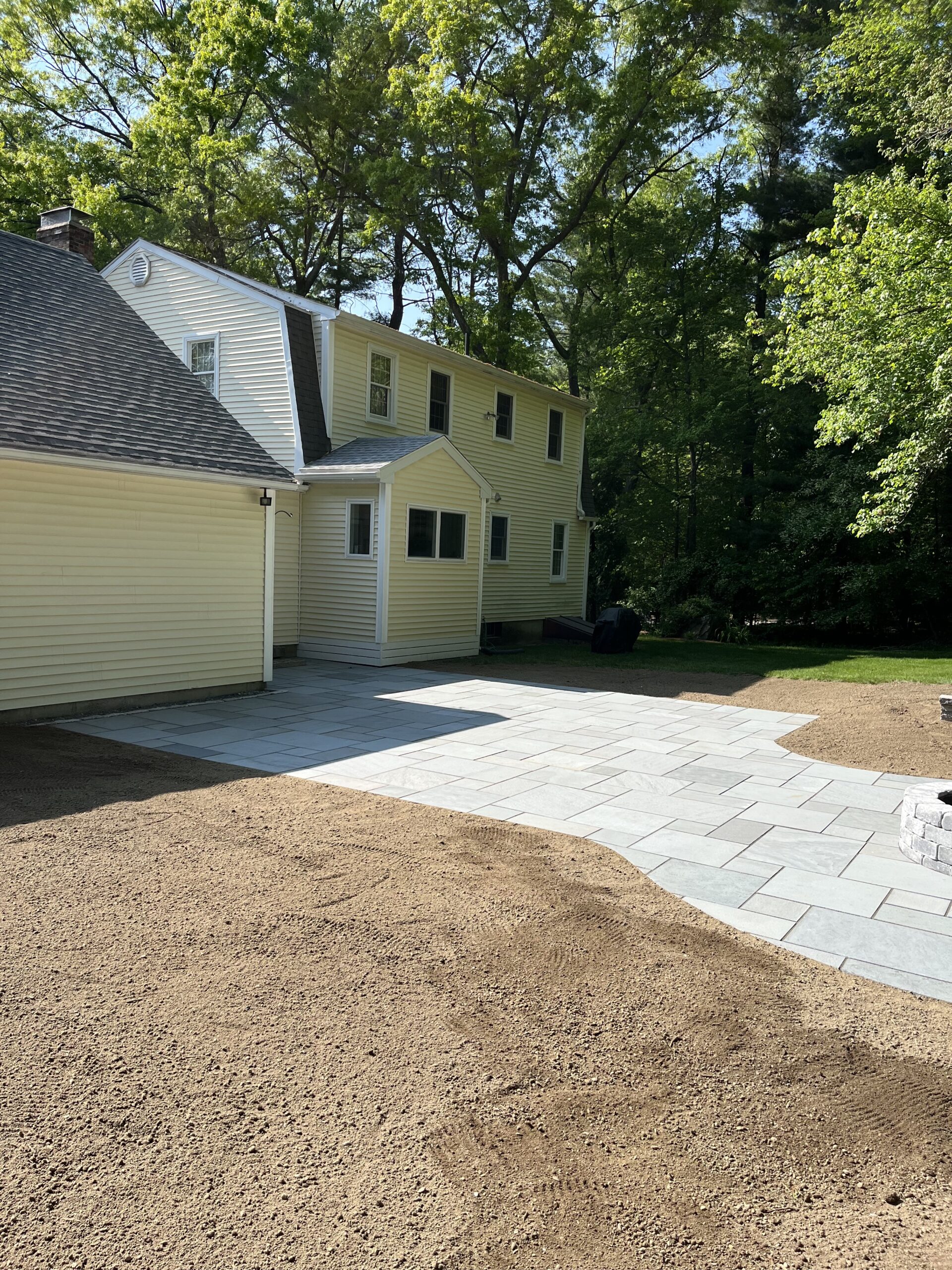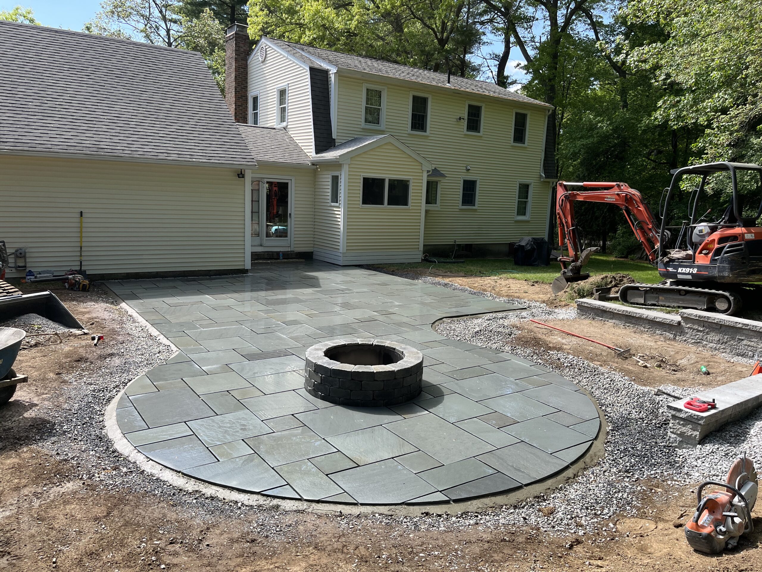 We recently designed and built this stunning natural bluestone patio and fire pit in Grafton, Ma. The existing wooden patio was excavated and replaced with this beautifully constructed natural bluestone patio, complete with dedicated fire pit area.