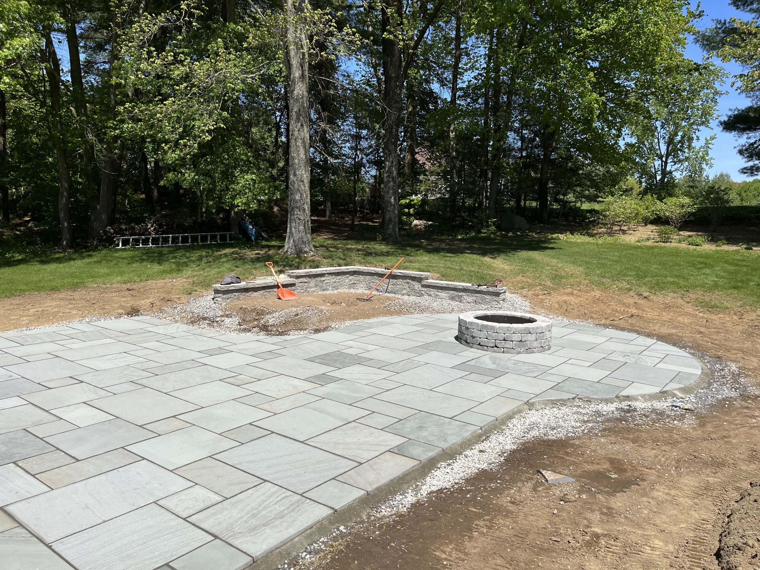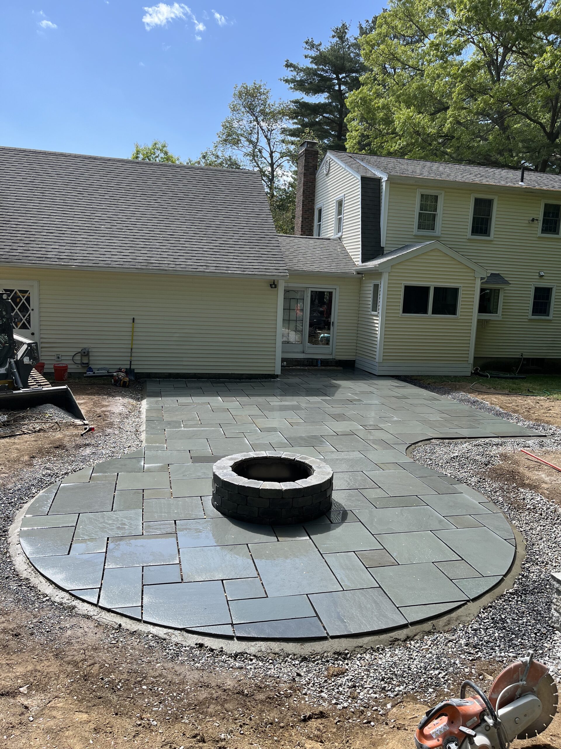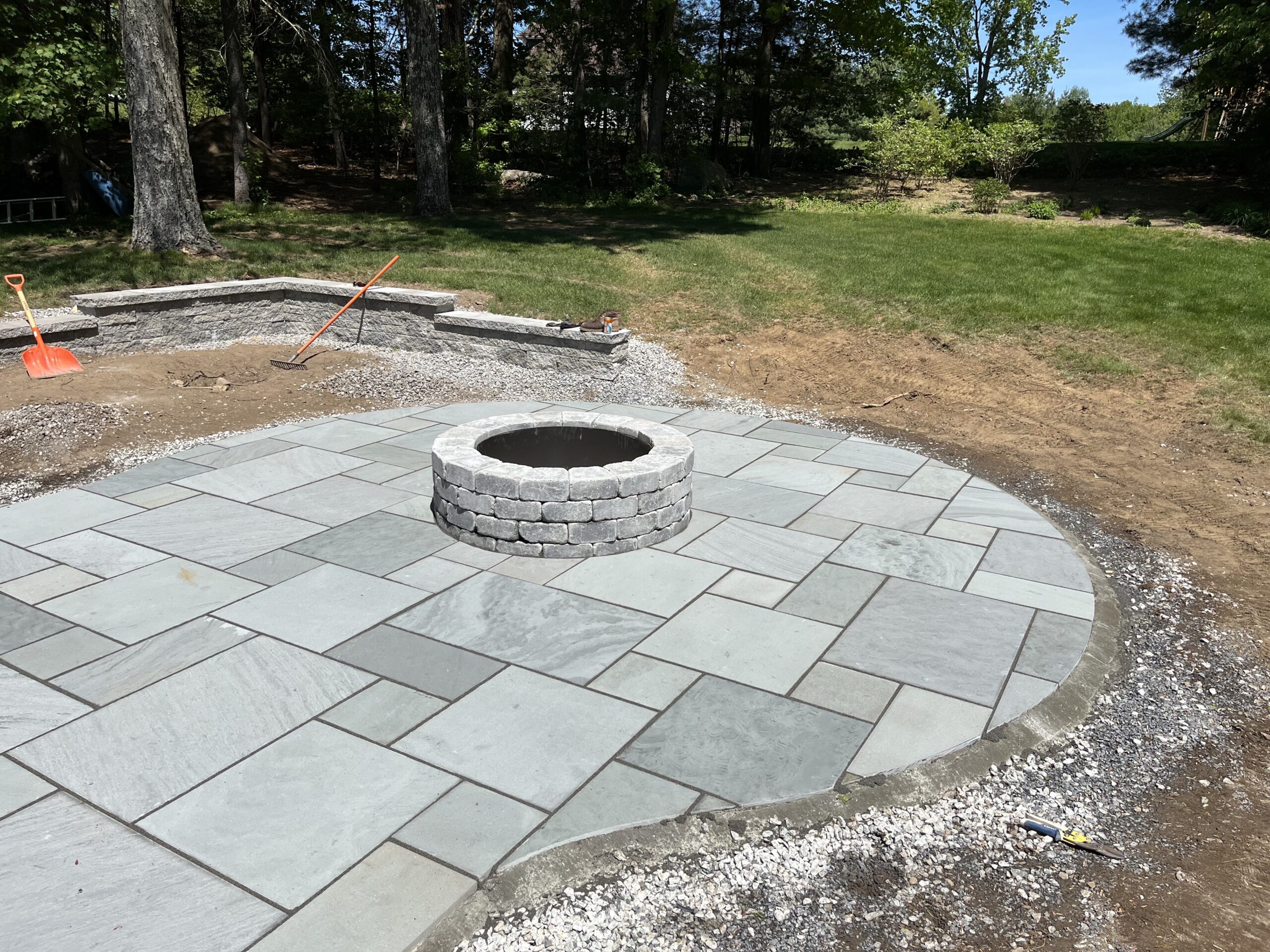 We recently designed and built this stunning natural bluestone patio and fire pit in Grafton, Ma. The existing wooden patio was excavated and replaced with this beautifully constructed natural bluestone patio, complete with dedicated fire pit area.