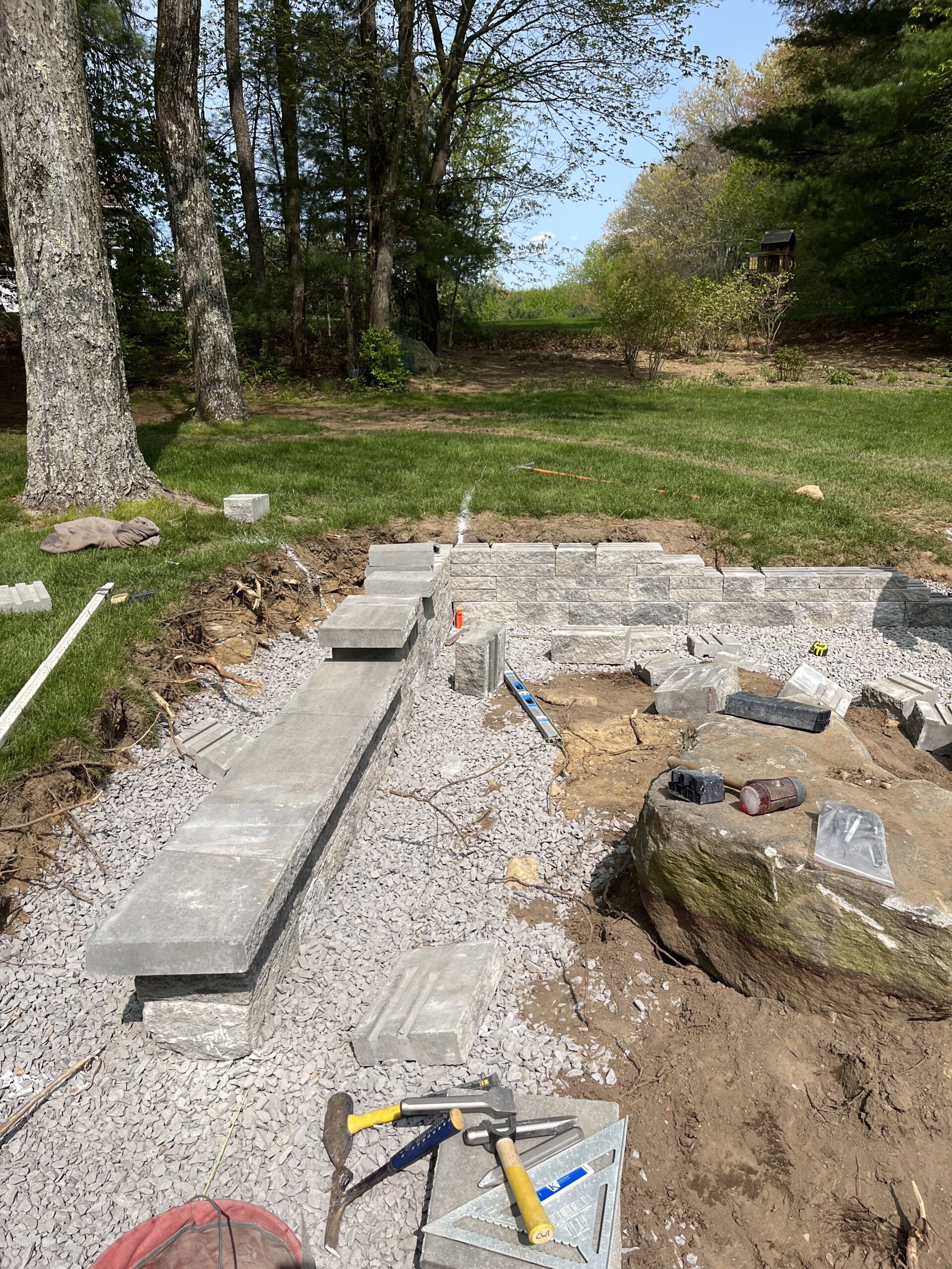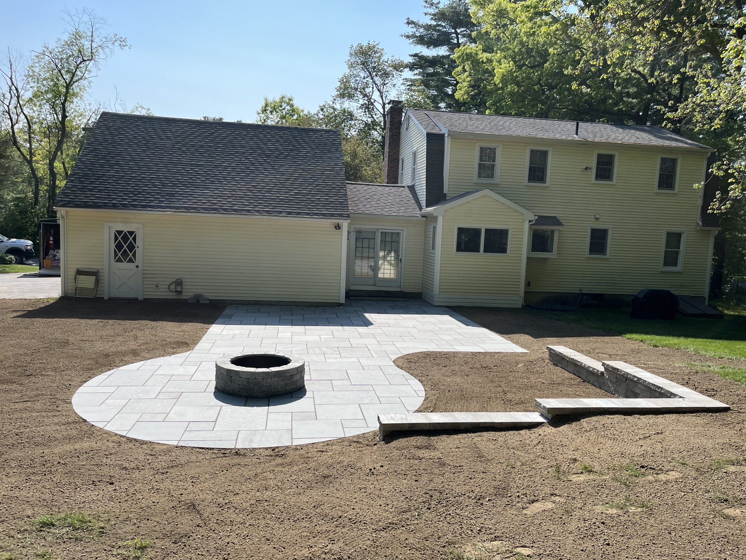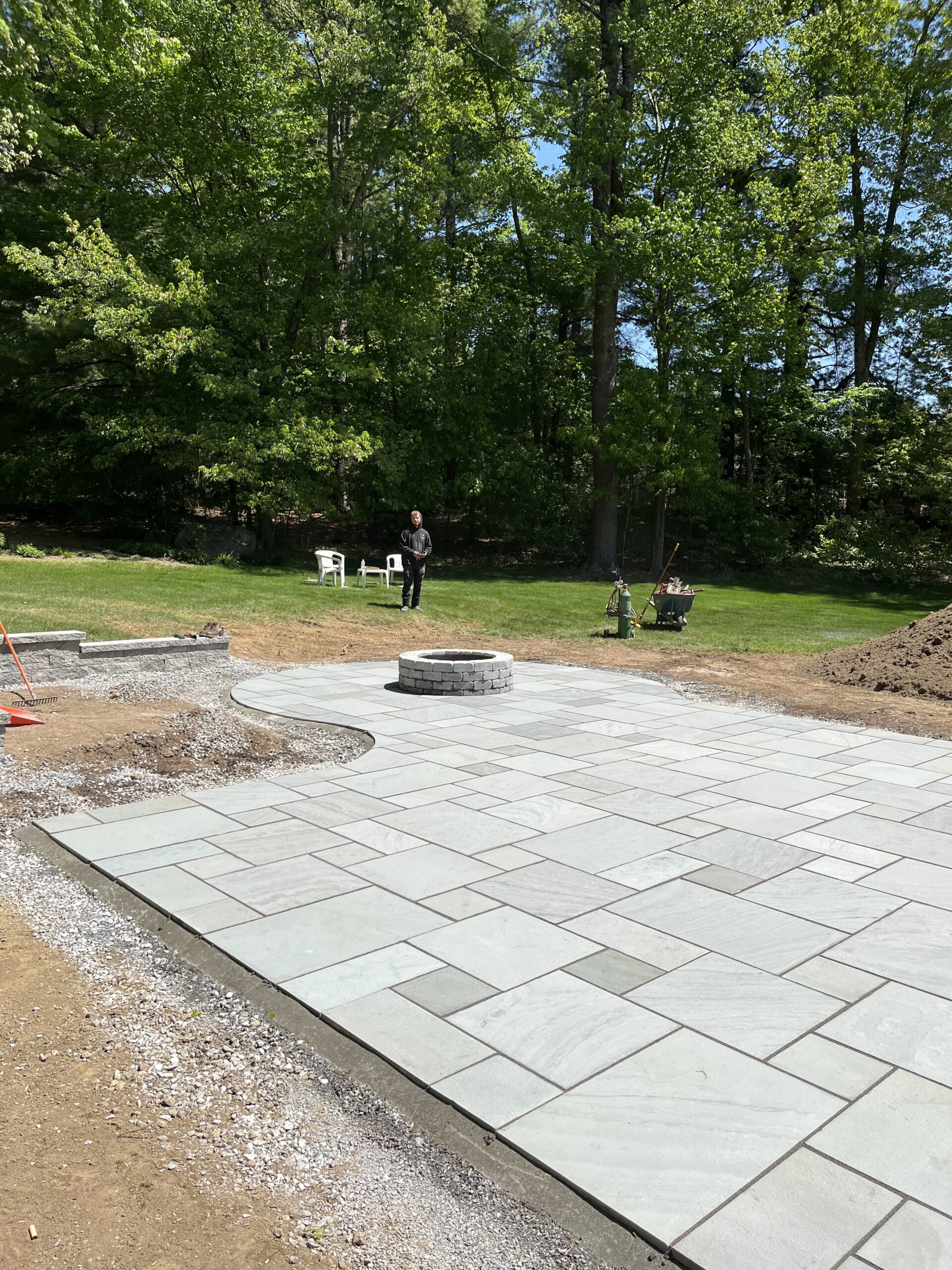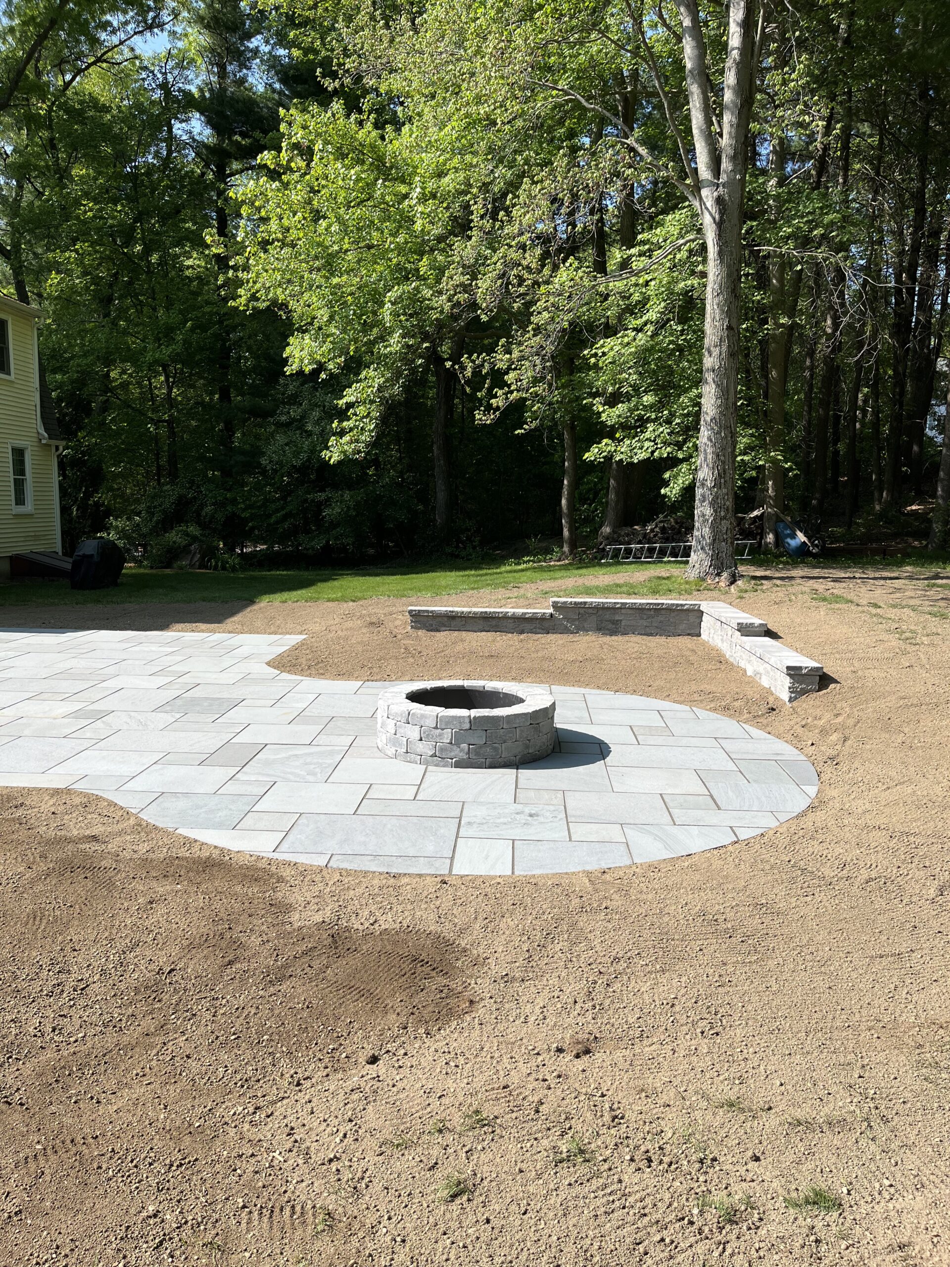 We recently designed and built this stunning natural bluestone patio and fire pit in Grafton, Ma. The existing wooden patio was excavated and replaced with this beautifully constructed natural bluestone patio, complete with dedicated fire pit area.
